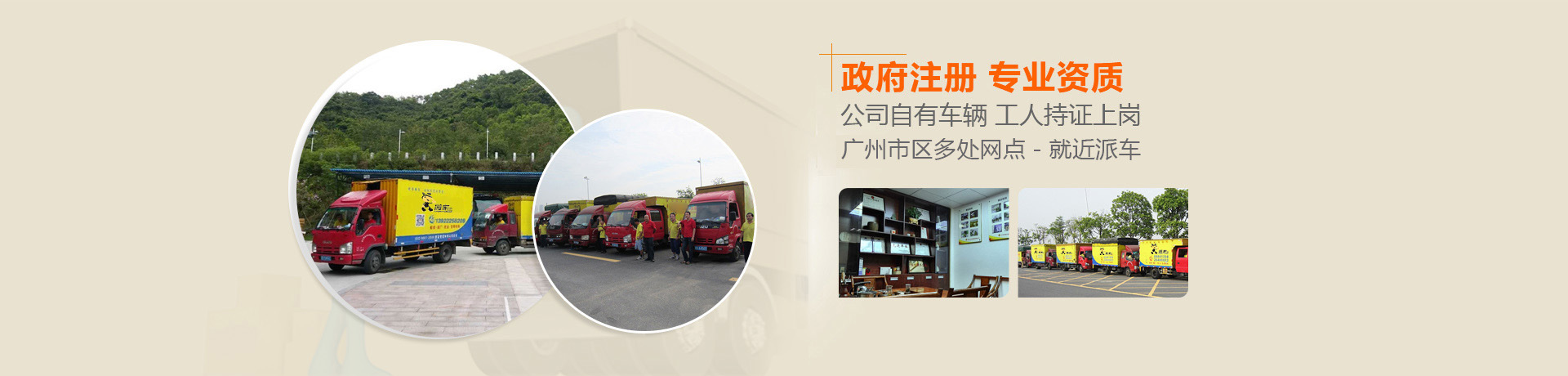 政府注冊,正規資質,固定辦公場所;公司自有搬家工人,職業培訓上崗;廣州搬家公司自有車幾十輛,統一調度,車輛GPS定位 服務保證,視服務品質為企業發展的生命 規范管理,通過國際質量標準管理體系認證;指定包裝、家具空調拆裝、鋼琴搬運、起重吊裝、海外搬家團隊;數千家大型企業、工廠的搬運經驗;企業搬遷,搬前制定方案,現場督導 員工素質高,司機駕齡2年以上,車組長5年以上搬家經驗